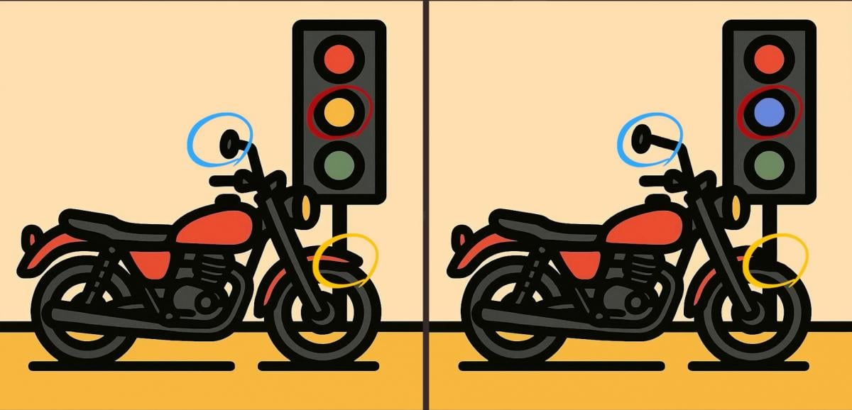 Tak co, jste připraveni na další výzvu? Podívejte se pozorně na dva obrázky motorky u semaforu. Na první pohled mohou vypadat stejně, ale jsou mezi nimi tři malé rozdíly. Myslíte si, že je všechny najdete za 19 sekund? Zkuste to a otestujte svou ostrost zraku!
