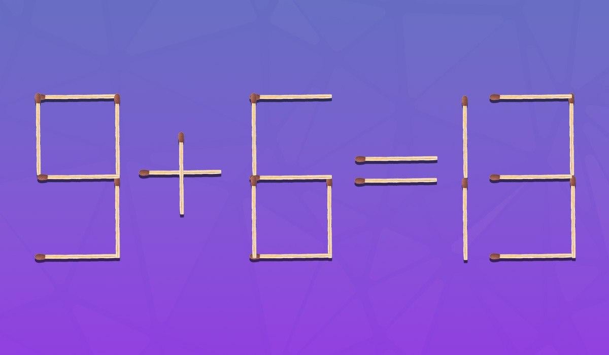 Níže uvedená hádanka je určena pro lidi s výjimečnými schopnostmi soustředění. Na obrázku uvidíte rovnost „9+6=13“, která je z matematického hlediska chybná. Musíte ji opravit.
